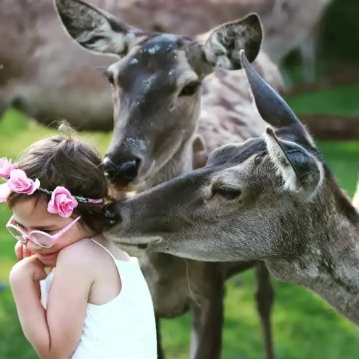 Bliski kontakt z naturą — jelenie, daniele i muflony na wyciągnięcie ręki w urokliwej, leśnej scenerii.