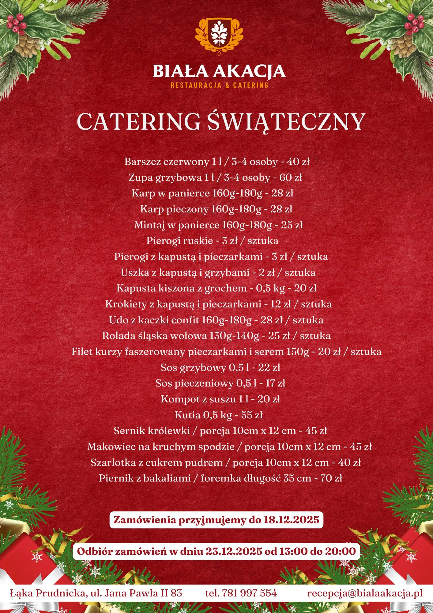 Odbiór zamówień: 23.12.2025 w godzinach 13:00–20:00