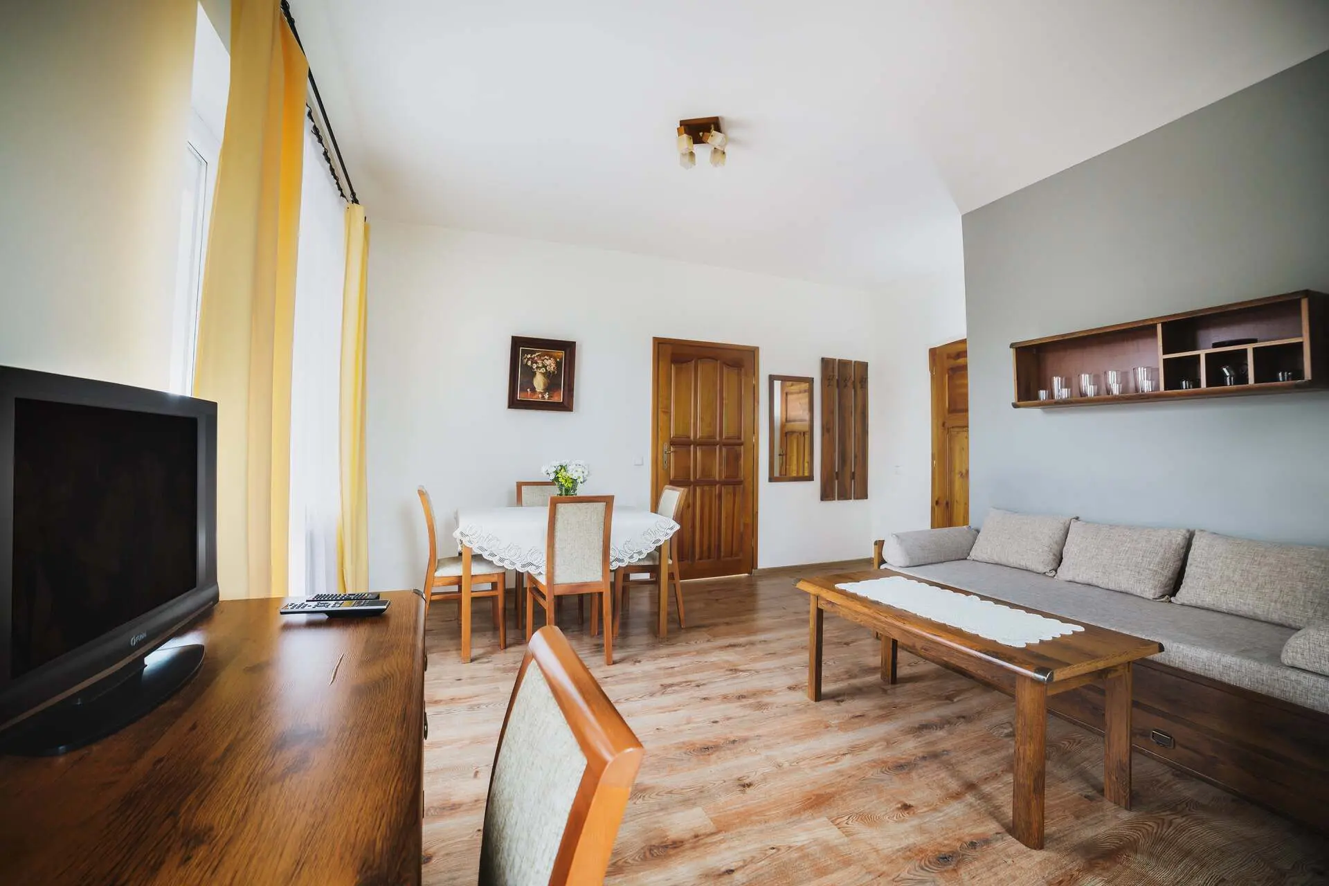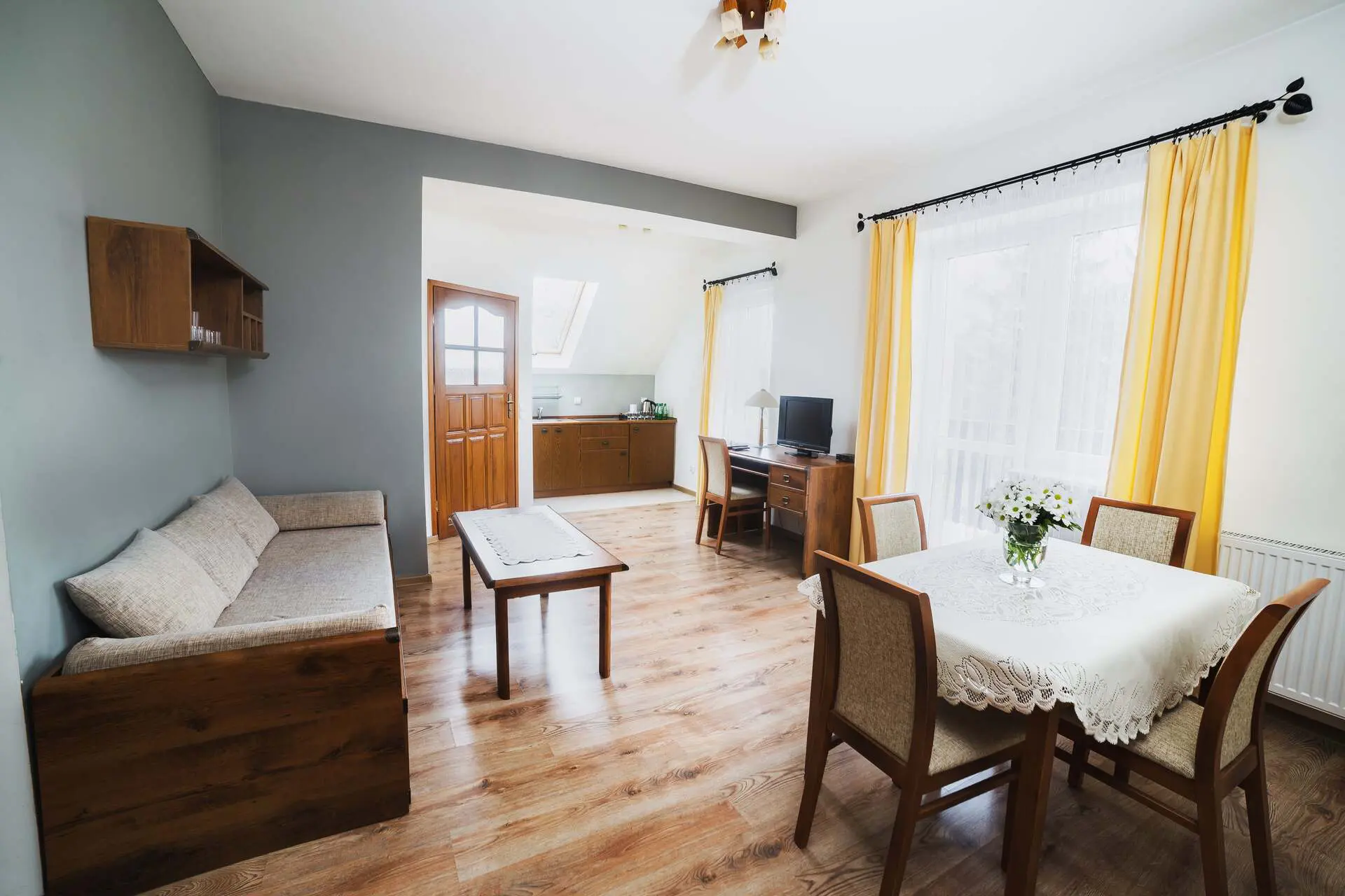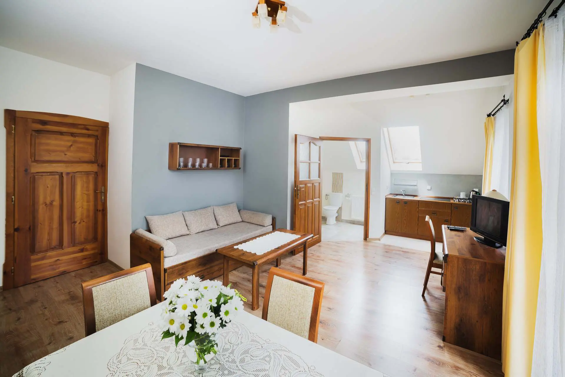 0 Za noc Apartament rodzinny z balkonem 40 4 łóżka 1 łazienkaApartament dwupokojowy o powierzchni ponad 40m2. W pokoju sypialnym są 3 pojedyncze łóżka, w pokoju wypoczynkowym jest rozkładana kanapa do podwójnego łóżka, aneks kuchenny, łazienka. Show more Hide allUdogodnienia w pokoju Aneks kuchenny Balkon lub taras Czajnik elektryczny Dostęp do Wi-Fi Kosmetyki Lodówka Łazienka z kabiną prysznicową Ręczniki Suszarka do włosów Szafa/garderoba Telewizor Zestaw powitalny