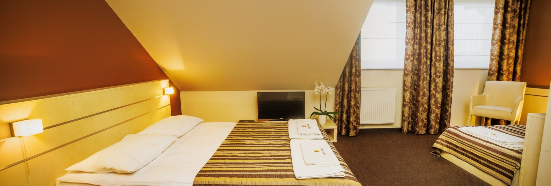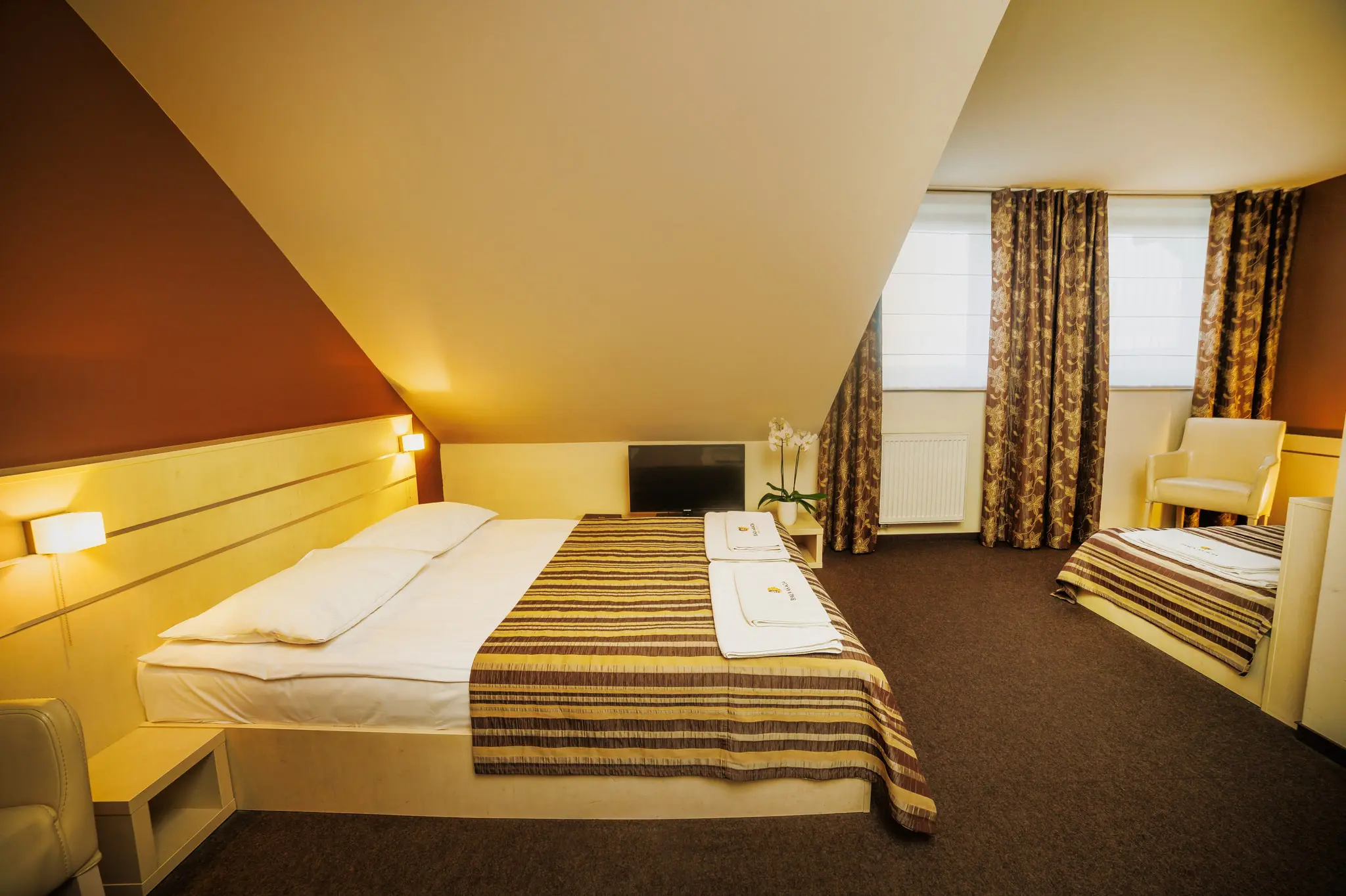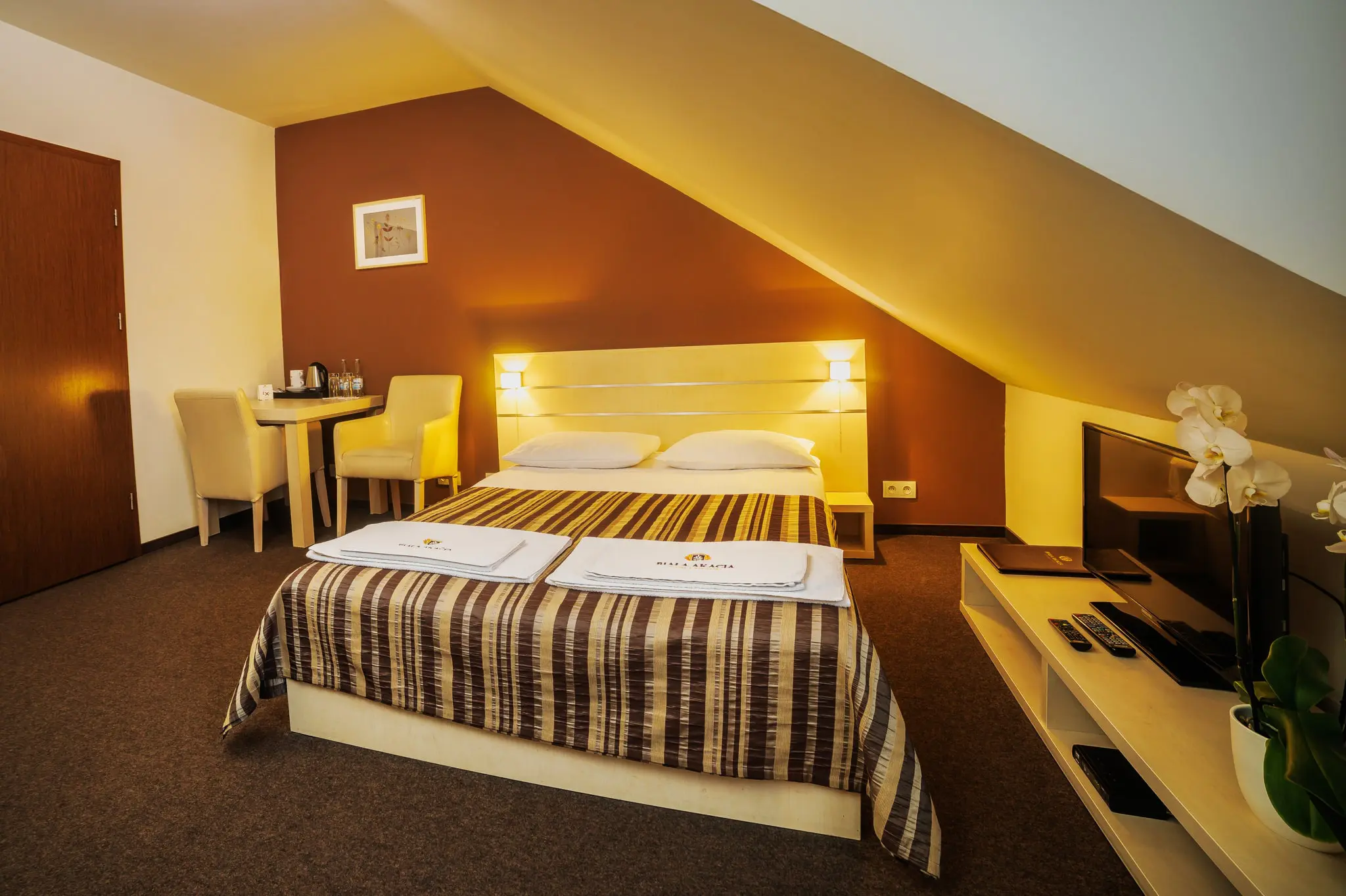 Pokój z podwójnym łóżkiem, telewizorem z płaskim ekranem i prywatną łazienką. Do dyspozycji Gości jest bezpłatny zestaw do parzenia kawy i herbaty oraz woda mineralna.